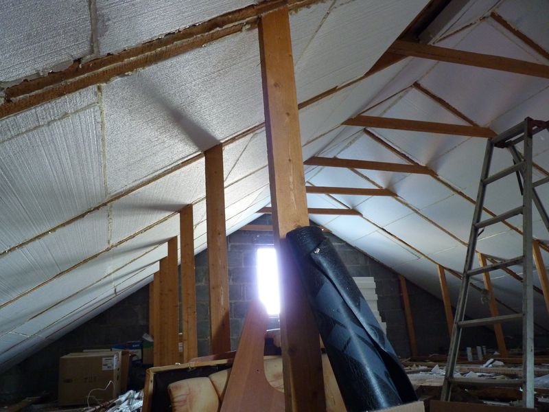 Была холодная мансарда. Обрешетка крыши из досок, потом рубероид и мет.черепица. Летом решил утеплить крышу пенопластом 100мм. Положил его между стропил и запенил. Между пенопластом и обрешеткой 5 см воздушного зазора. Провели отопление для обустройства мансарды .... и началось. При минус 15-20 градусах все нормально, но при потеплении в метрах полтора-два от конька на пенопласте скапливаются точки конденсата и чем теплее на улице, тем больше - почти потоп. Самое обидное, что пока были морозы и все было нормально, сделал 2 комнаты с отделкой. Может ли быть причина в вентиляции ? Снизу у карниза я запенил и все швы. Конденсат также появился и в неотапливаемых "углах". Если дело в вентиляции, то снизу у карниза, могу сделать вырезы а вот вверху? Можно ли по центру мансарды вырезать дыру до конька?. Помогите советом, как обойтись "малой кровью" |