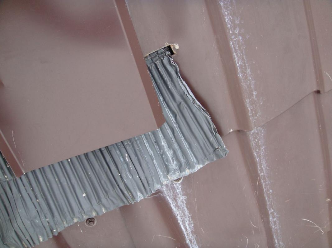 Я не сторонник металлочерепицы и данные фото можно смело определить в раздел "страшилки", но они очень наглядно показывают, как можно выполнить монтаж при помощи кривых рук и отсутствия мозгов. Добавлю, что данное окно монтировалось не в готовую кровлю, как многие подумали, а в процессе её монтажа. И все таки материал имеет значение...
