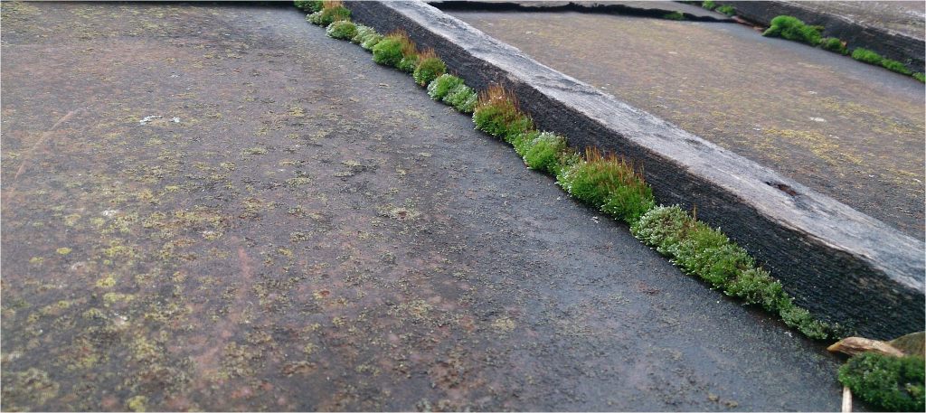 Считаю, будет полезным показать, следующие фотографии, разрушив тем самым миф, что мох растет только на пористых поверхностях, типа битумной и композитной черепицы. Он так же комфортно чувствует себя и на гладких металлических кровлях. На первом фото алюминиевые листы.