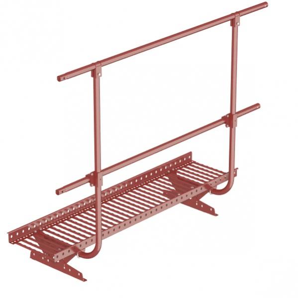 Поэтому, мы как производитель, конструктивно заложили возможность использования еще одной или даже нескольких труб (причем как горизонтальных так и вертикальных) для кровельных ограждений. (они есть в прейскуранте и монтируются даже на готовую конструкцию) Так же на основание конструкции ограждения прекрасным образом устанавливается платформа переходного мостика- отверстия овальной формы, кстати, предназначены для нее). Т.е мы получаем удобную, надежную и безопасную конструкцию.