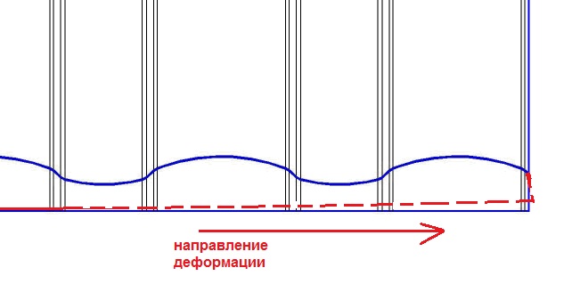 Этот эффект есть на любой черепице, но чем профиль жестче, тем этот эффект меньше. На классическом профиле он практически не заметен. На существующем Кантри более выражен, около 1,5мм набегает. Новый вариант Кантри будет пожестче, там этот эффект будет менее выражен.