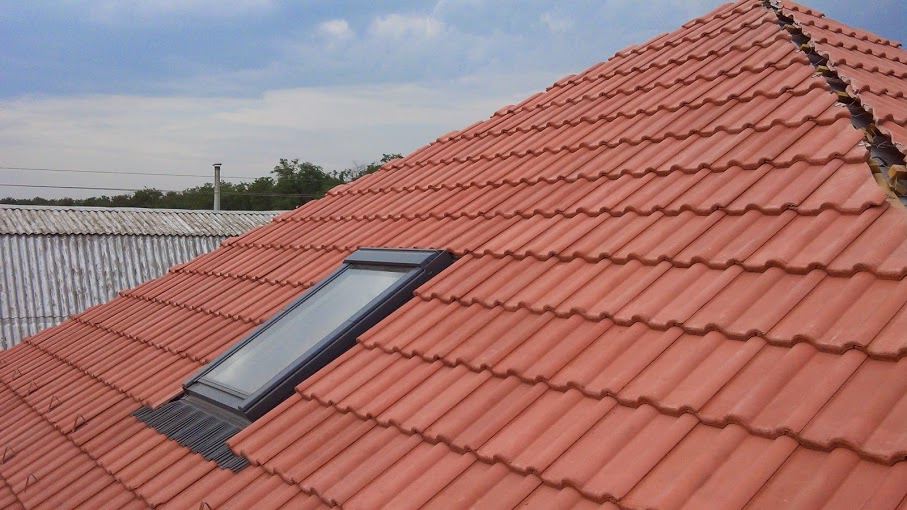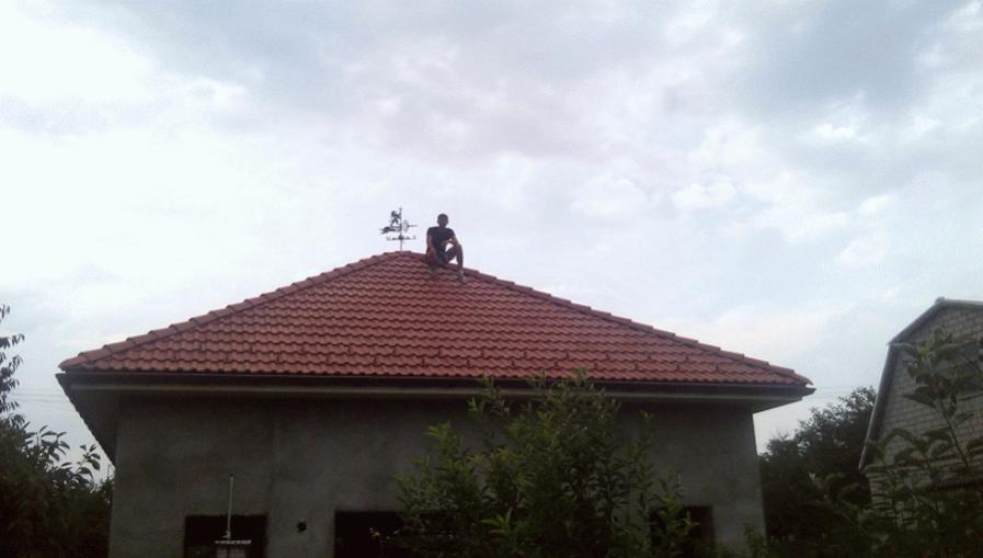 Не поверите. Это бетонная черепица Аляска нашего местного завода. Производится на итальянском оборудовании. Данная черепица - эконом класс, без топового покрытия, окрашена в массе. Суммарно на сегодняшний день она чуть дороже европейского металла. Правда тяжело объяснить, что это то, что надо при экономии денег.