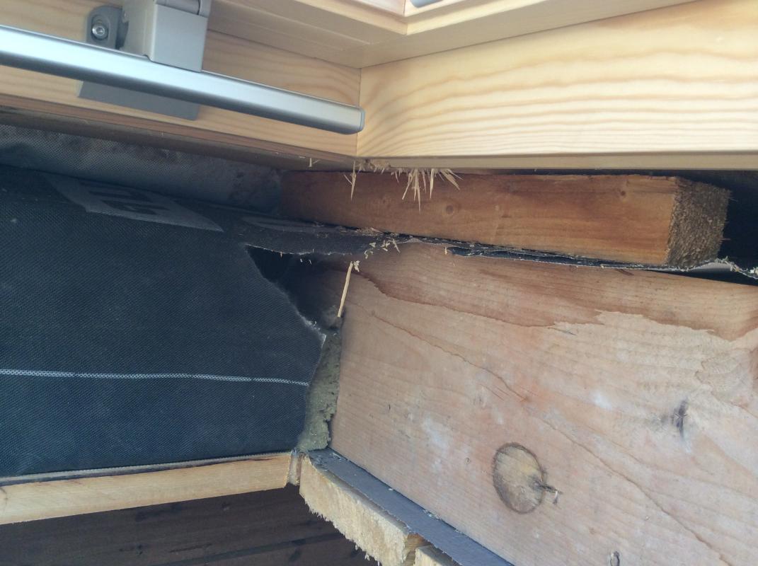 В принципе, ошибка довольно распространенная. Я имею в виду разрыв в гидроизоляционном слое при установке (или врезке) мансардного окна в кровельный пирог со сплошным настилом.