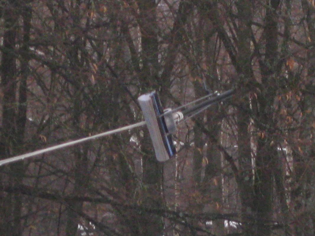 Недавно увидел такую картину. Рядом с офисом монтировали антенну на растяжках. В качестве одного из креплений применили швабру