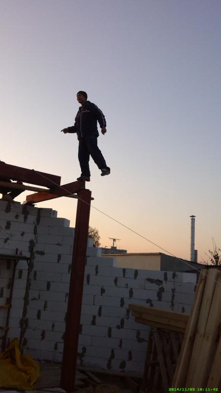 Сразу не посмотрел предыдущие фото, думал 11 метров висящего швеллера держит горизонт нормально
