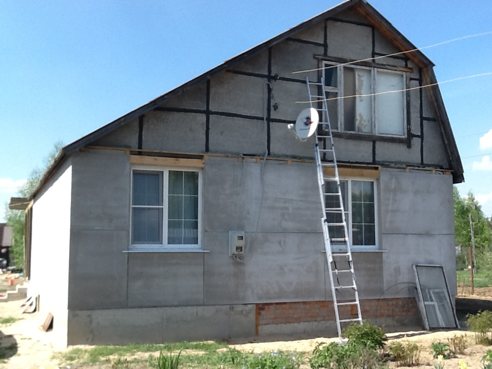 3. Способ работы - так называемый "шефмонтаж". Когда со стороны привлекается только один специалист , а не бригада рабочих. А в качестве дополнительной рабсилы выступают сами хозяева и их родственники. Требует постоянного ежедневного присуствия на стройке. В данном случае сам хозяин и был дополнительной рабсилой ( и снабженцем в том числе).... причём не просто принеси-подай, а с навыками работы на высоте, т.е выступал в качестве монтажника,плотника,подсобника и т.п. на всех этапах строительства.
