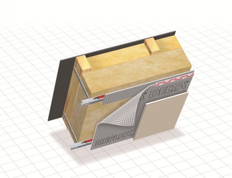 Пароизоляционная плёнка быстро и надёжно крепится по направляющим с помощью двусторонних лент (например, DELTA-DUO TAPE из акрилата или DELTA-BUTYL BAND из бутил-каучука).