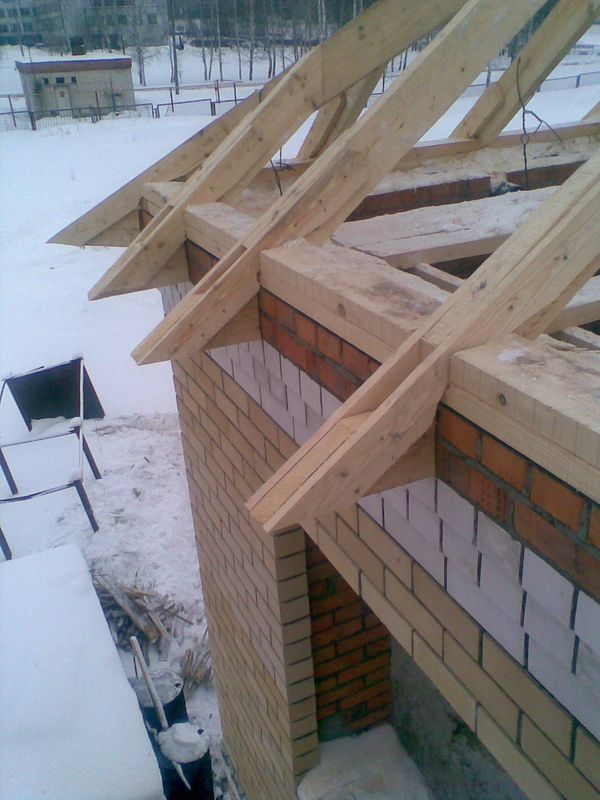 Наслонные стропила упираются нижним концом в мауэрлат и через него передают на стену нагрузки от веса конструкции крыши. При данной схеме опирания на стену передаются не только вертикальные нагрузки, но и горизонтальные, возникающие вследствии работы стропил враспор.