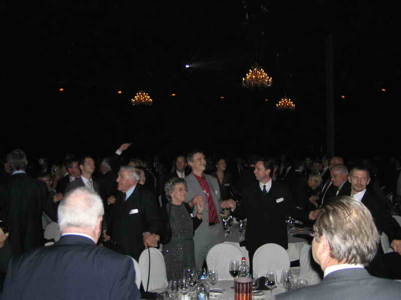 После посещения завода, вечером для всех гостей был организован роскошный праздничный фуршет с живой музыкой, которую вначале играла Бельгийская группа в стиле нашей группы "Воскресенье", а после ужина и поздравлений в другом зале продолжили праздник под джазовые аккорды в исполнении Бельгийского оркестра в котором, как положено, были и скрипачи, и трубачи, и саксофон, и конечно же не забываемый чуть хрипатый голос солистов.