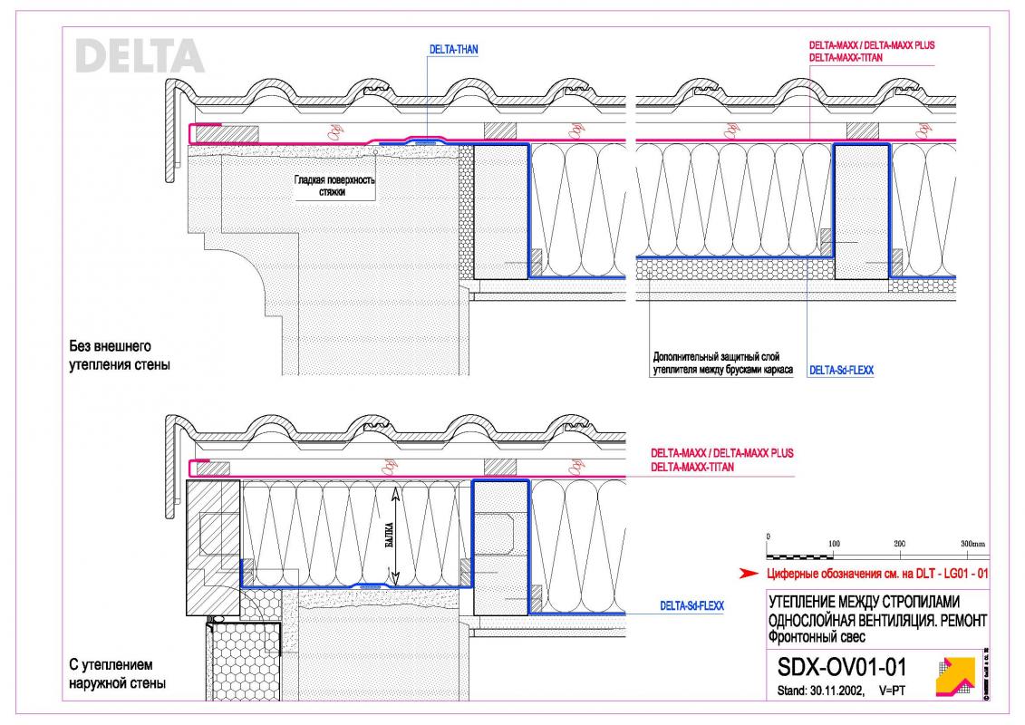 Есть два варианта: плёнка с переменной паропроницаемостью (DELTA-Sd-FLEXX или её аналоги) и классические плёнки, укладываемые "корытом" между стропил.
