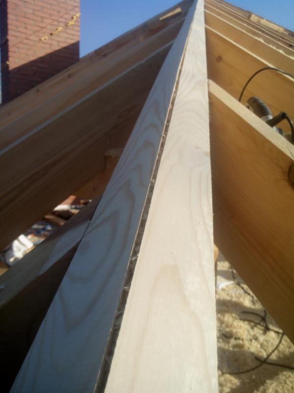 С ребром да .... самоистязание ,присоединяюсь к вопросу Сергея по поводу него. Одно замечание по трубам ,если они печные то маловато будет отступ от них , если вентиляция и крыша теплая все-равно лучше 5 см отступ делать . да еще не заметил нигде как закреплен мауэрлат ? Ну и на ребро лучше уголок по солиднее ставить ,ни как на нарожниках .