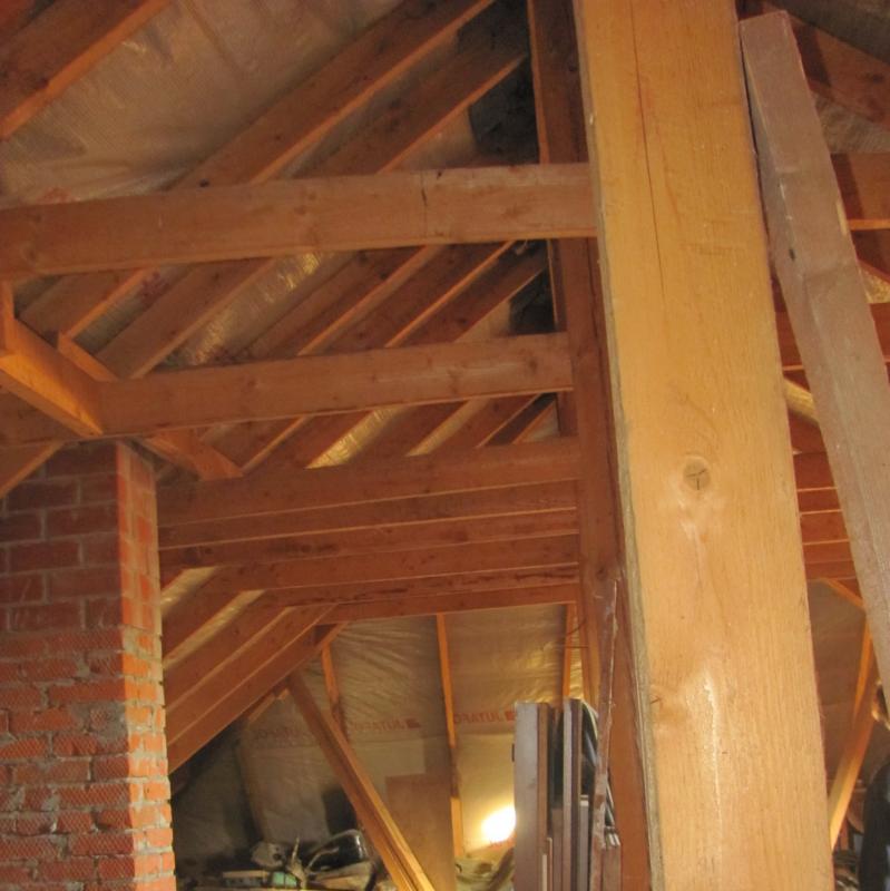 Вот обещаные фоты. Фактически, основание мансардного этажа - это не прямоугольник, а два прямоуголька, образующих букву Г, как Италия на карте мира, сапог. И столбы по центру, также буквой Г. Плюс две трубы - кирпичные прямоугольные колонны вдоль стен. Это все проходки, как я понимаю, и по всем надо оформить и паро и гидроизоляцию герметично. Теперь еще и зашла речь о контрутеплении изнутри от пароизоляции с увеличением ширины стропил. Т.е. общий слой утеплителя - 20 см. Нажмите на изображение для увеличения