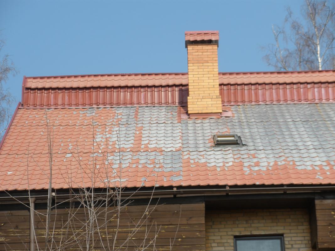 Добавил к теме фотографию, по которой наглядно видно качество самого металла. Вид металлочерепицы слева, оставляет желать лучшего :( Проще выражаясь, эта металлочерепица просто теряет цвет. По всей видимости ее полимерный слой не устойчив к ультрафиолету или к температурам, возможны еще причины.
