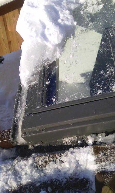 не нет общей фотки. так то проблема понятна вполне и логична, снег тает на стекле и стекает в низ полурастаявший в шелобке между карнизным окном и мансардным он намерзает потому как скапливается (лоток же холодный) уровень воды-льда поднимается забивает лоток и лезит во все щели выдавливает уплотнители и окно течет через резиновые уплотнители. как вариант можно бросить греющий кабель или просто порезать этот лоток и выгнуть как капельник чтобы небыло образования льда
