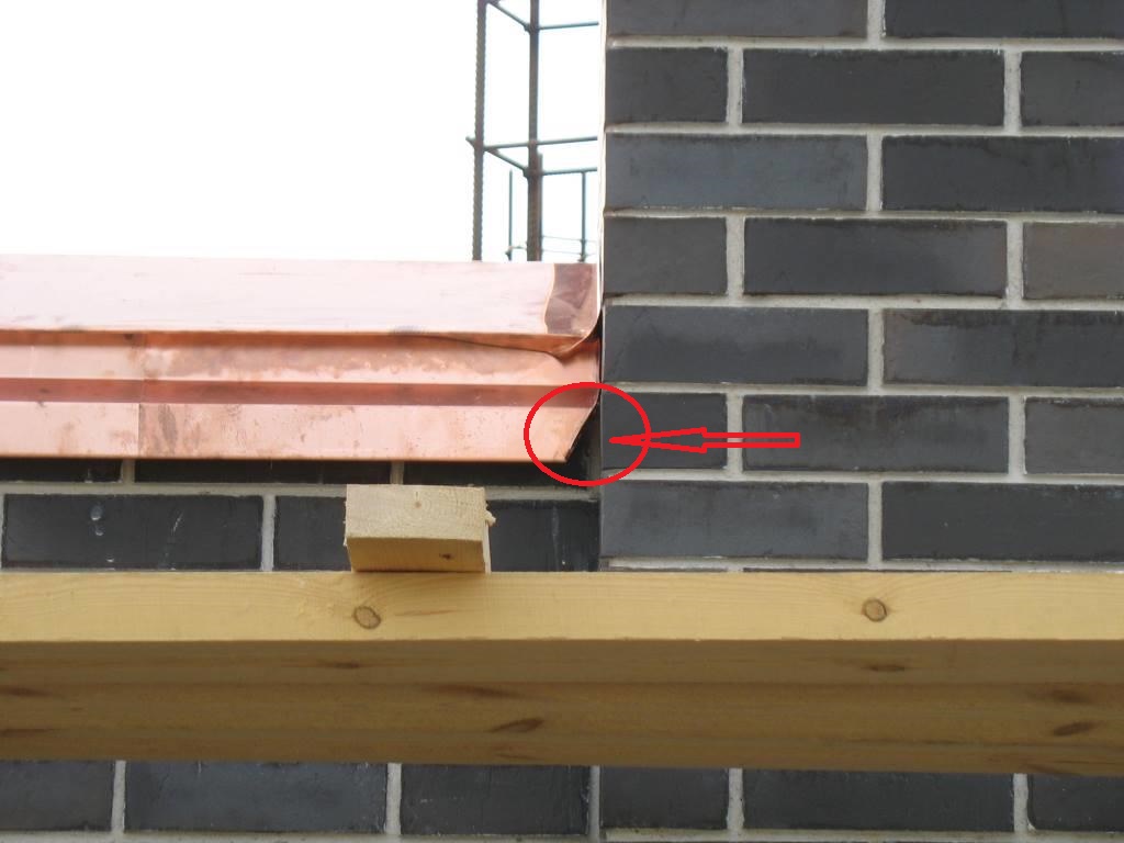 На парапетах гребни на косую для стёка воды!