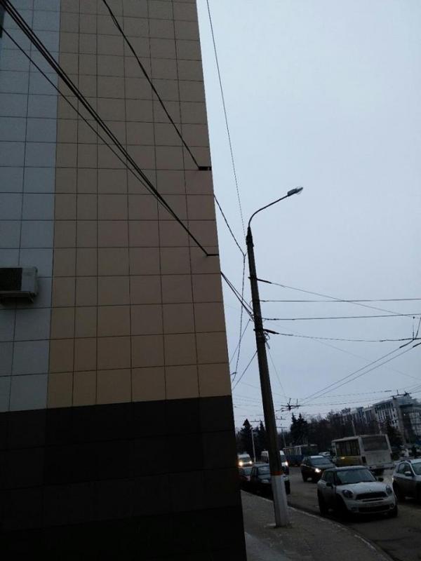 В Твери вмуровали в стену линию электропередач при отделке фасада здания Тверской государственной медицинской академии (подсмотрено в ФБ)