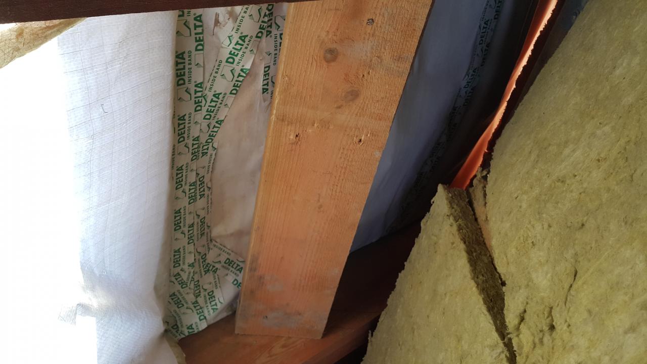 Ветрогидрозащиту всю порезали ,порвали и заклеили зеленым скотчем . Ендову положили без всякого усиления на доску 150мм. Разбирать и переделыватьне хотят. Говорят можем обратно поставить снятый утеплитель .
