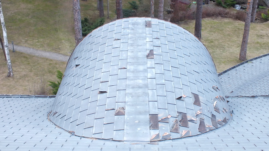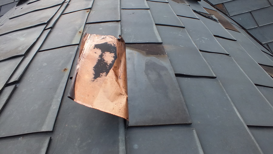 1. Этой медной фольгой покрыто несколько домов в поселке Николино в Рублевском районе Мособласти. Везде одинаковые проблемы - фольга отошла, хотя битум сохранился довольно хорошо, что удивительно!