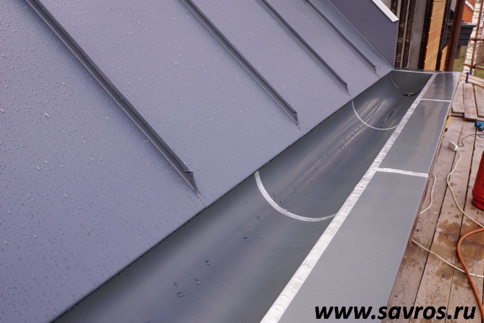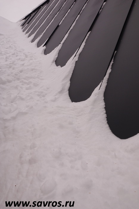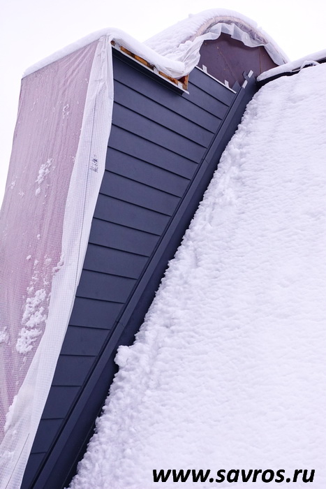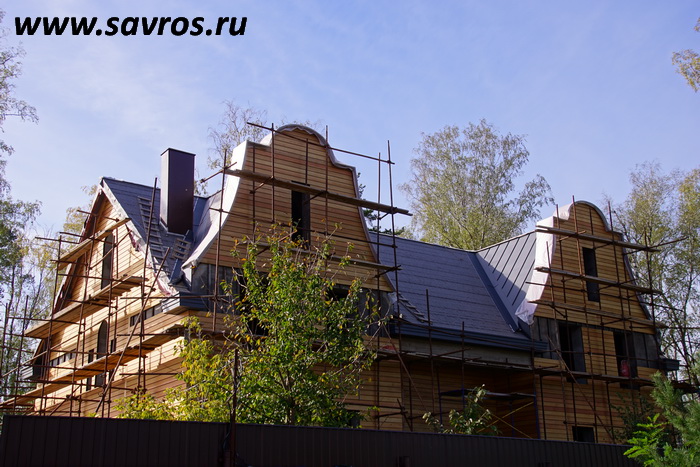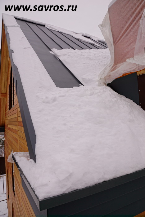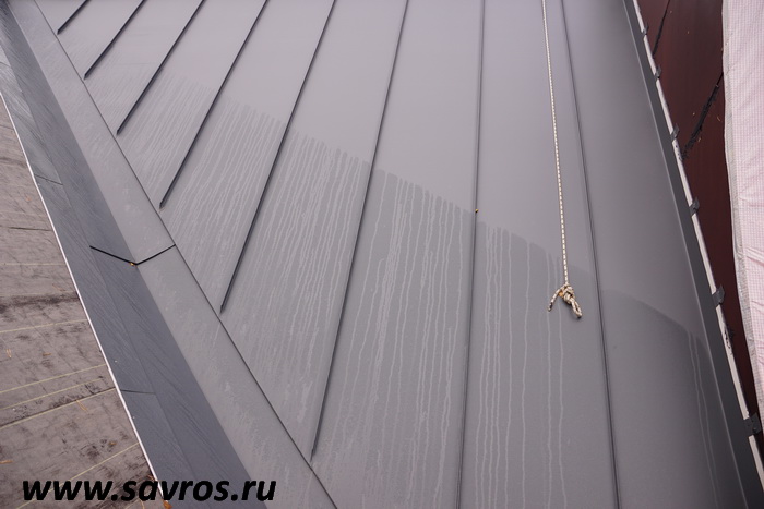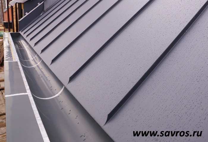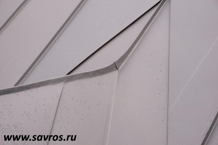 Кровля окрыта сталью с покрытием (видимо,Пурал?),а объемные карнизы/желоба из титан-цинка? Офигенская,кстати,идея,с этими карнизами-желобами,с подвесными желобами не было бы такого эффектного внешнего вида.