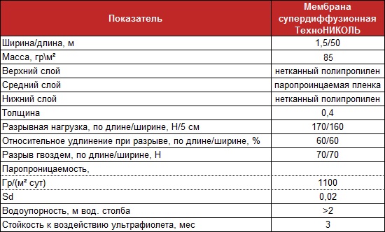 Технические характеристики продуктов Изоспан: