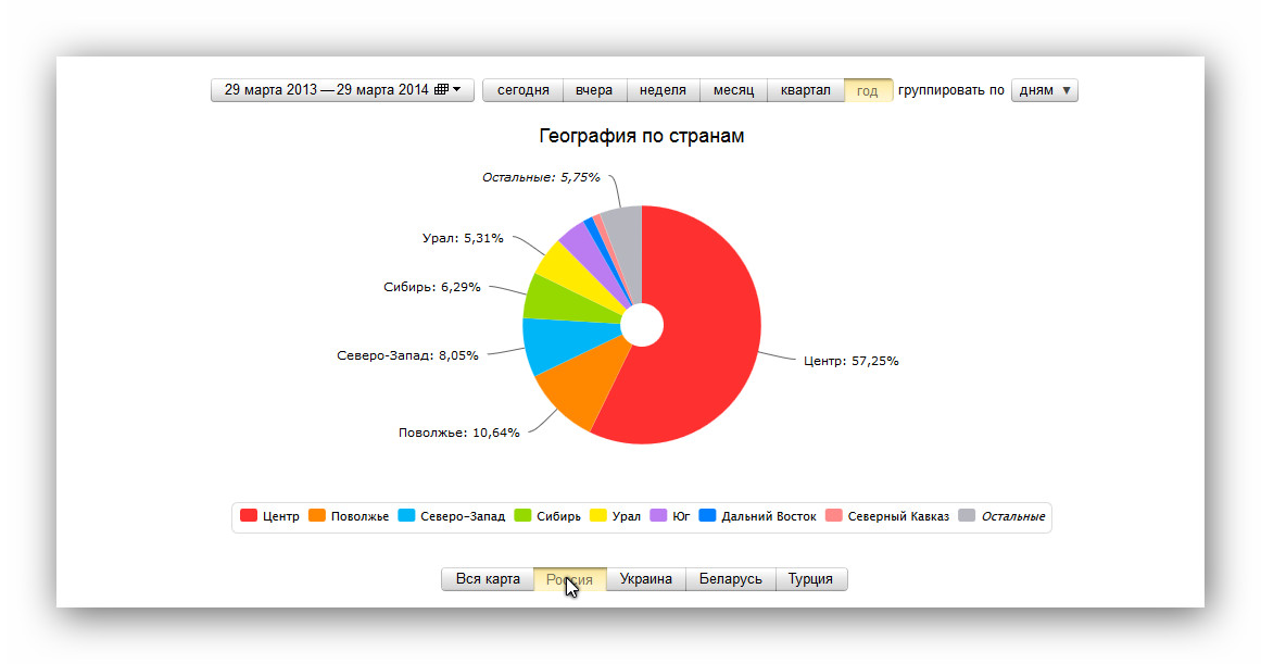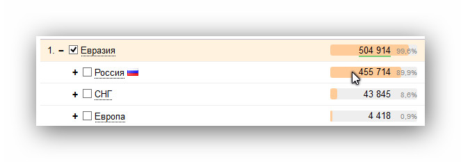 Грубо говоря, из пятисот тысяч посетителей из Евразии, четыреста пятьдесят пять тысяч - россияне.