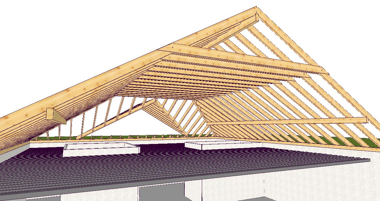 Все к этому идет.Придется еще два прогона добавлять.  Забыл написать - это мансарда. Это слуховое окно. Под него тоже коньковый прогон будет.(см влож)