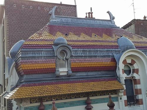 Реконструкция крыши дворца Vaissier в Туркуэне было сделана 10 лет назад и до сих пор она имеет очень оригинальный вид. Формы, цвета, интересная укладка самой черепицы. |