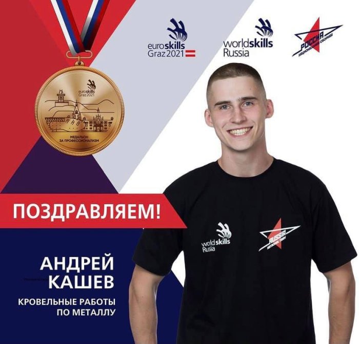 Андрей Кашев, сын известного в профессиональных кругах кровельщика Анатолия Кашева, занял 4 место в части проектирования и изготовления металлических кровель на EuroSkillsGraz2021 и получил заслуженную «Медаль за Профессионализм».