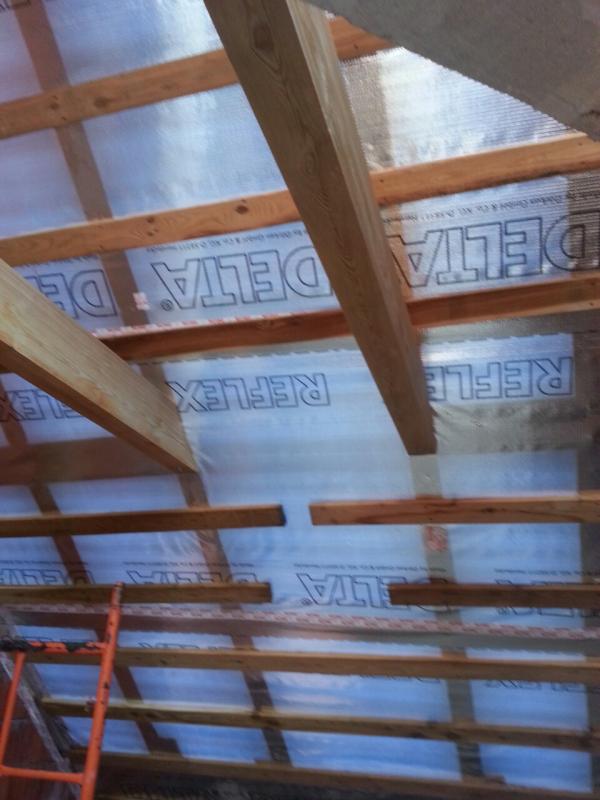 Межстропильное и надстропильноет утепление. 250 мм в обещей сложности. Соответственно применены нормальные пленки. Перед этим перебрали всю стропилку. Заменили все кобылки 18 штук , если не ошибаюсь. Заменили плохие стропила. Перенесли стропила в нужные места. Все это по человечески закрепили и поставили 9 распорных балок в основной кровле.