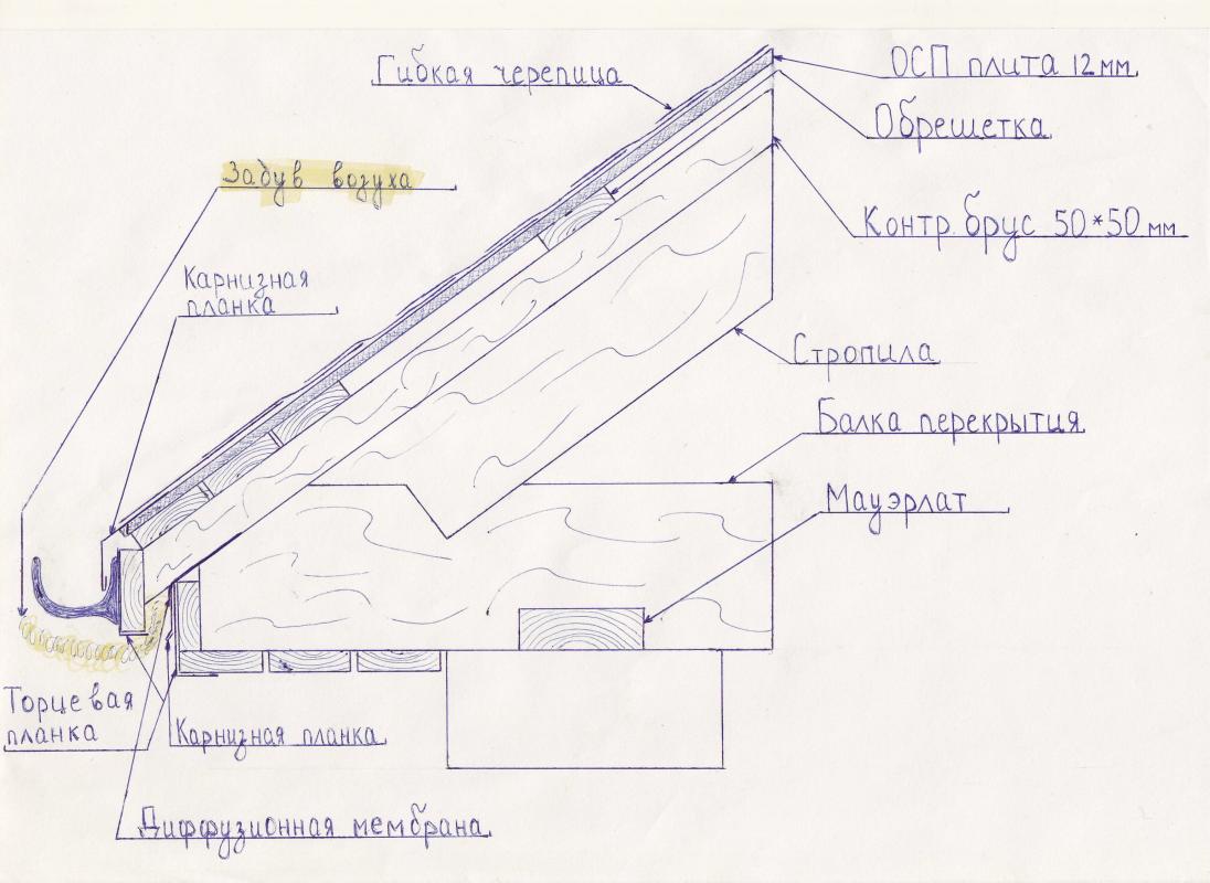 Честно говоря какой-то смешной торг. Вы доказываете что при уклоне кровли в 12 (или 15 как на рисунке) градусов схема работать не будет. Абсолютно согласен с вами. Более того я вообще полагаю что при таком уклоне подобный материал применять нельзя. Этот уклон критичен даже для фальцевой кровли. В данном случае наиболее правильной будет наплавляемая кровля.