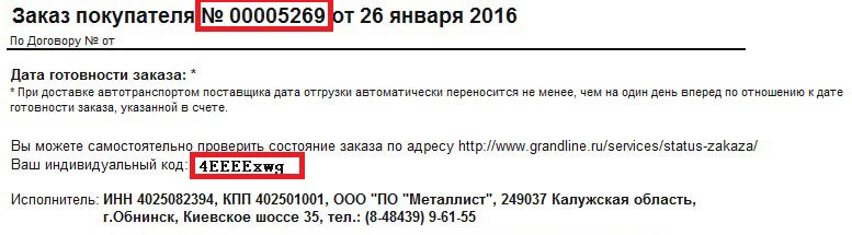 Сегодня мы запустили новый сервис по проверке статуса заказа на нашем сайте http://www.grandline.ru/services/status-zakaza/ Как это работает? Чтобы проверить статус заказа нужно пройти по ссылке http://www.grandline.ru/services/status-zakaza/ или через раздел "Сервис" в главном меню сайта. Открывается форма, где нужно ввести: номер заказа + код заказа + проверку с картинки. Индивидуальный код (код заказа) мы печатаем в каждом счете. Номер заказа можно вводить как с нулями, так и без. Вводим все данные и получаем таблицу с номенклатурой заказа и его статусом. |