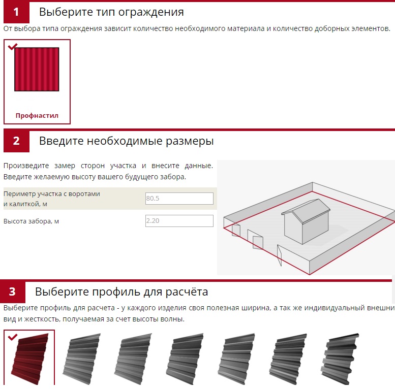 Рады вам представить калькулятор по расчету ограждений на нашем сайте http://www.grandline.ru/about/news/k...a-ograzhdenij/ С помощью данного калькулятора вы без труда сможете рассчитать количество материалов и доборных элементов для забора из профнастила. Укажите периметр, высоту вашего забора и выберите профиль. После расчета есть возможность изменить цвет, покрытие и толщину металла, которые лучше всего подходят для вашего забора. Чтобы перейти в калькулятор ограждений, нажмите на ссылку http://shop.grandline.ru/raschet-ogragdeniy/ или выберите соответствующий раздел на главной странице сайта. Готовы ответить на ваши вопросы! |