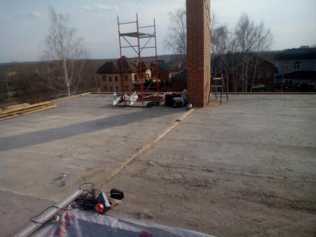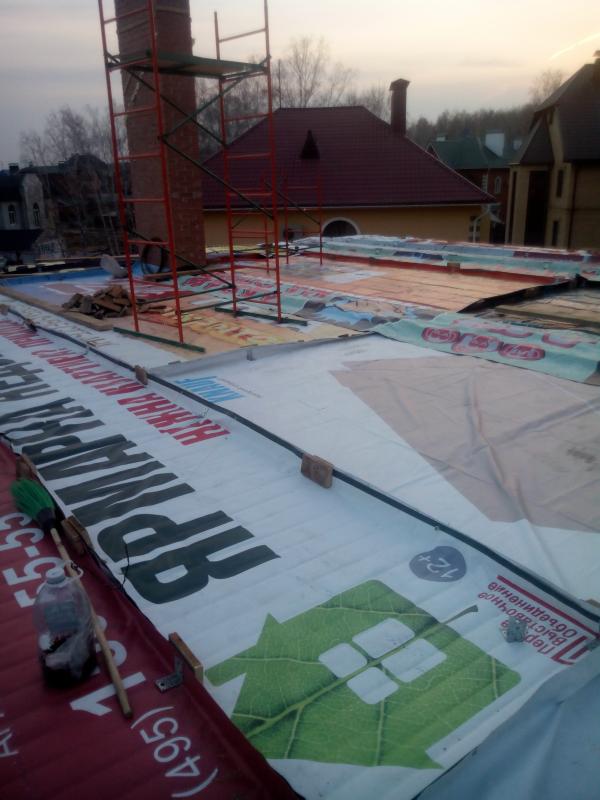 Зачем? Поставим стропилку, постелим гидроизоляцию и можно убирать.