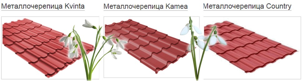 Напоминаем, что также можно заказать металочерепицу Country, Kamea, Kvinta в покрытиях Drap и Satin.