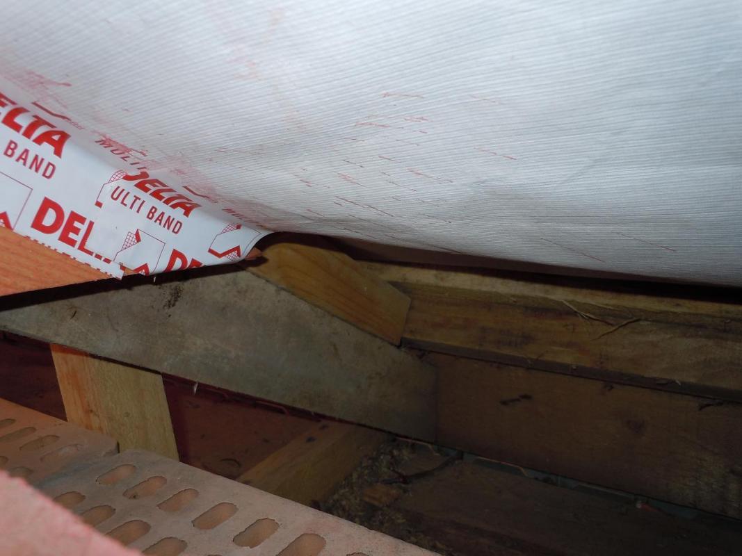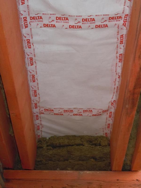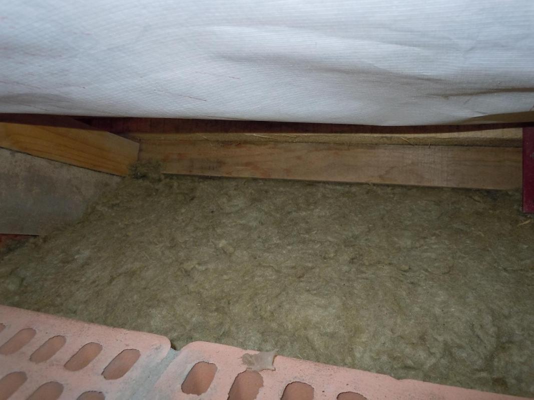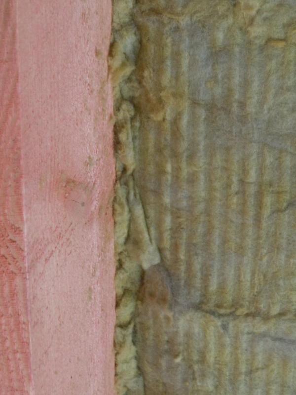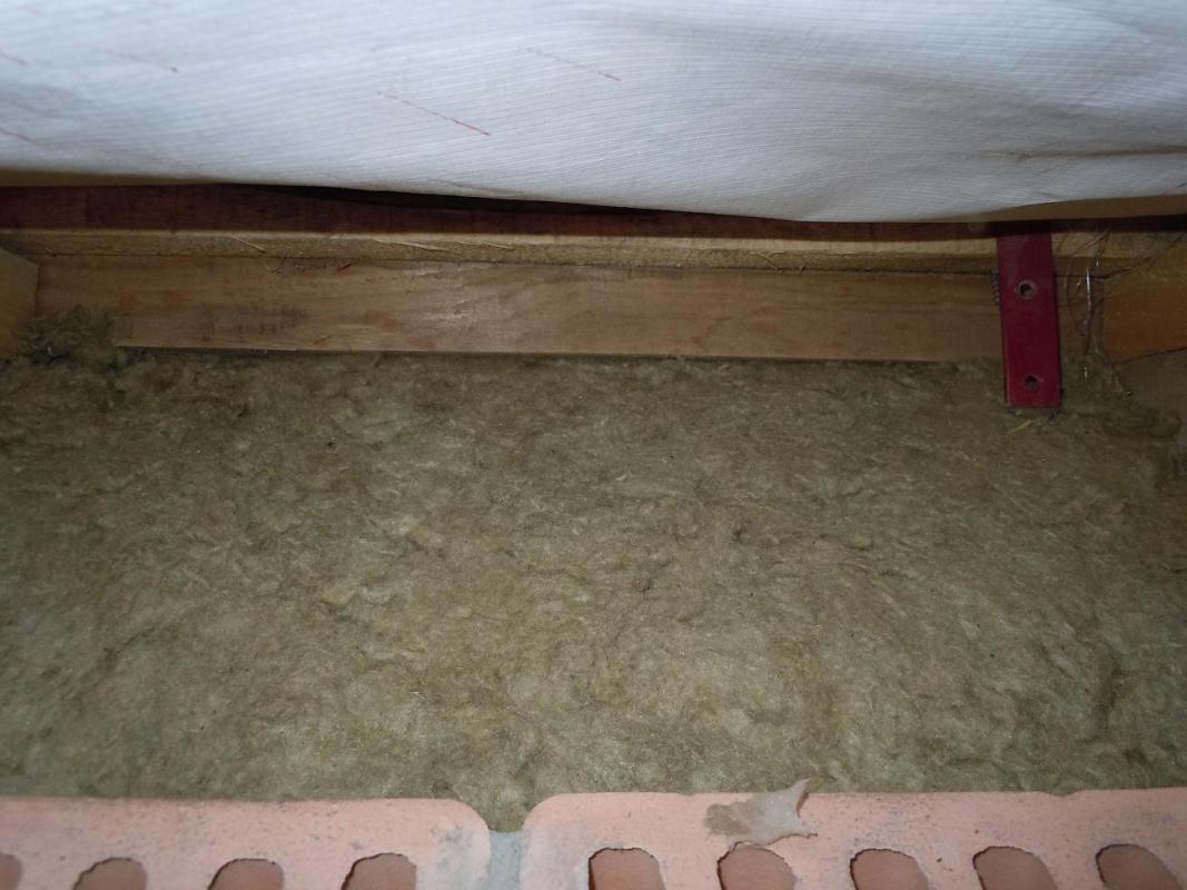 Еще хочу поделиться своим наблюдением и, пусть небольшим, но все-таки первым опытом работы с ватой. Для тех, кто этого еще ни разу не делал. Если работаете на скатной кровле плотным утеплителем (у меня Изорок 10см пл. 50), не берите +2см к межстропильному расстоянию. Это много. Не более +1см. Иначе его о-о-о-чень трудно запихивать между стропил и, что хуже, края очень сильно подминаются. Я брал +1см с расчетом, что при отрезании получается еще меньше. В итоге получалось +0,7-0,8см. Он плотно входит, хорошо прилегает к стропилам и не падает, как видно. На фото результаты первых ошибок.