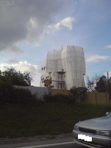 Меня в каждом конкретном случае интересует, как кровельщики справились со СВОЕЙ задачей. А справились они , на мой взгляд , великолепно. И, мне кажется, в таком "крематории" жить красивее, чем в таком "слоне". ( см. фото). Естественно, абсолютно субъективное мнение.