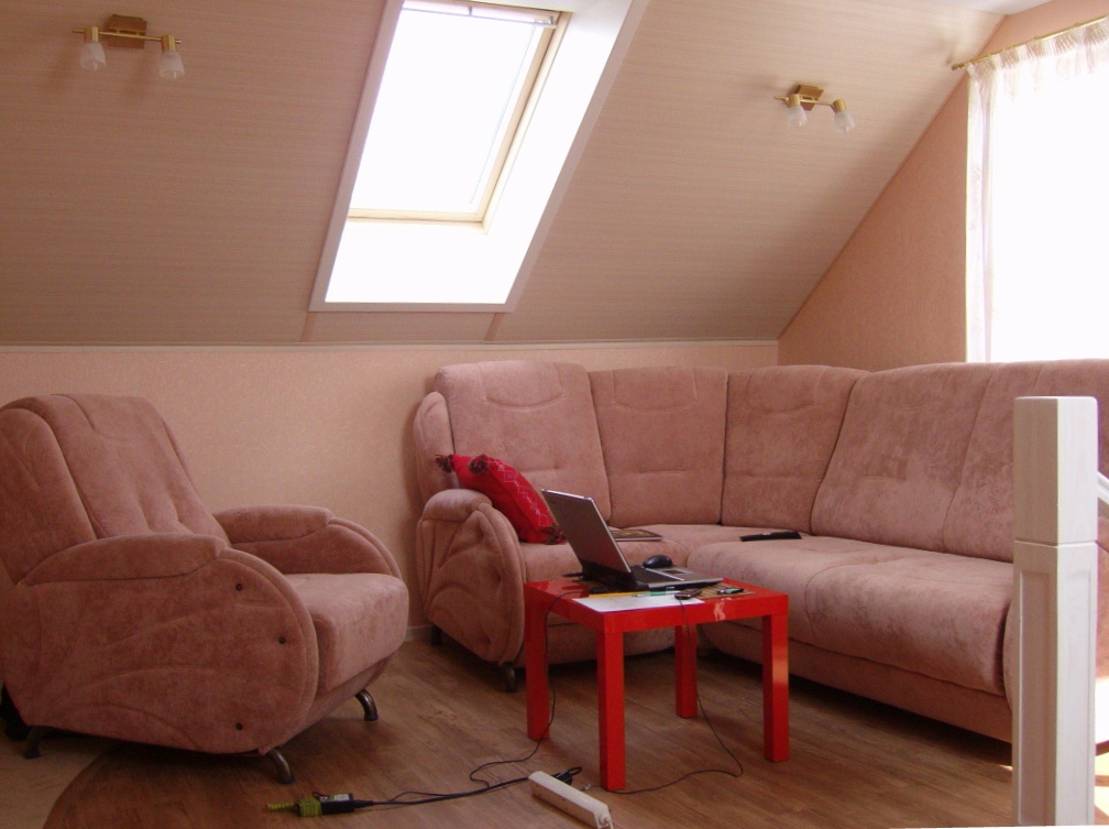 Теннисный стол на мансарде, помогает не унывать длинными зимними вечерами.