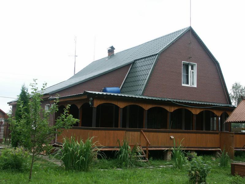 Вариант отделки фронтона сланцем. Однажды я спросил у бригадира - ты знаешь что такое сланец? Он подумал и ответил - да знаю, это такой тапочек резиновый! СМЕЯЛИСЬ ДОЛГО!