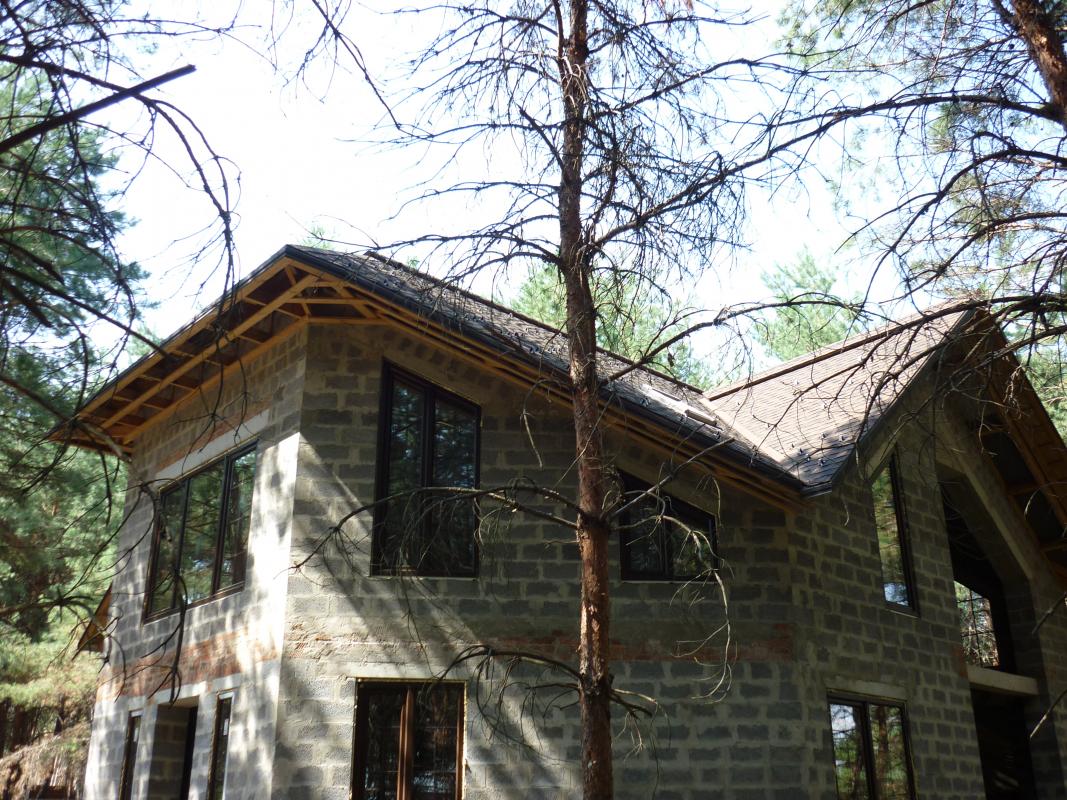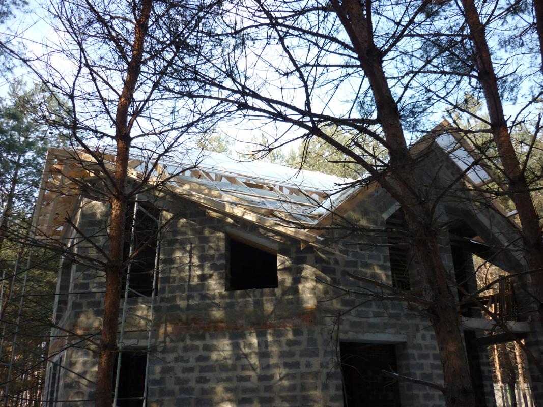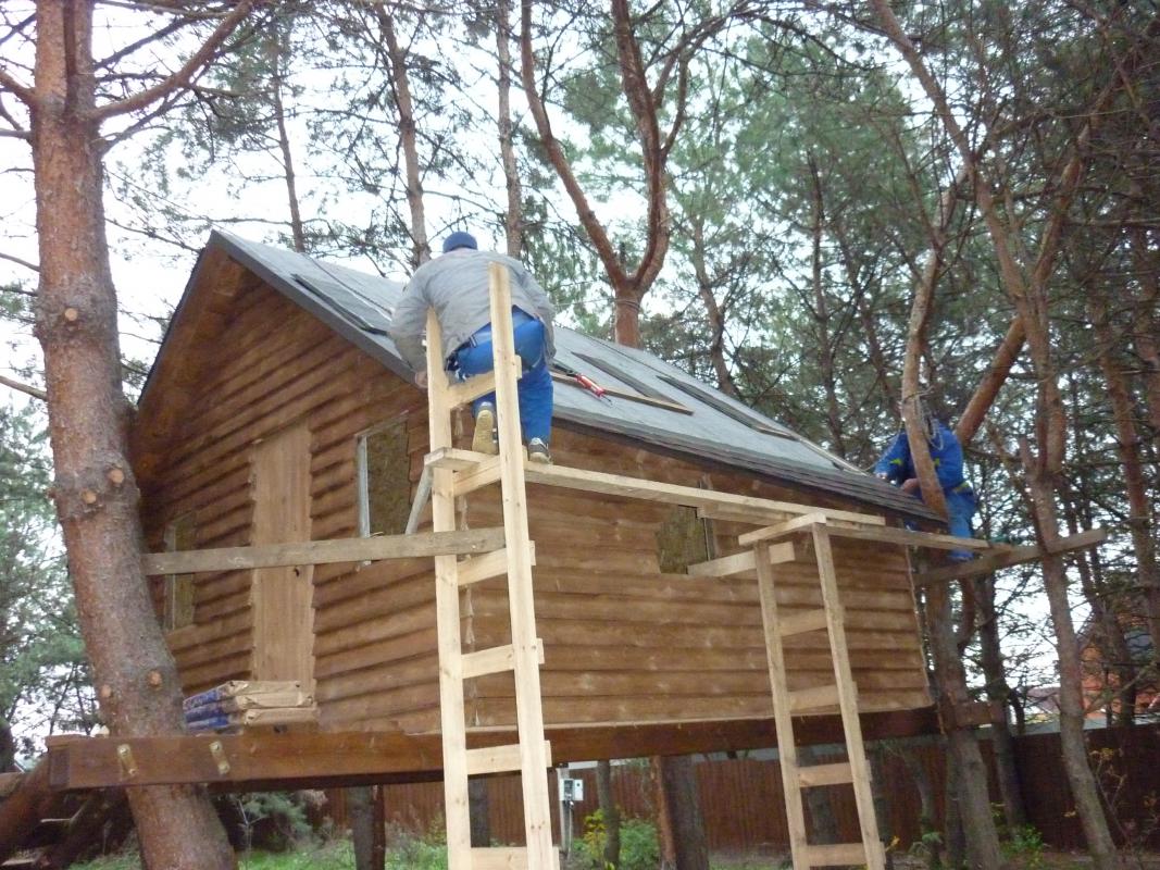 мне больше нравится этот дом, в прошлом году собрали крышу, а подшивались в том году.