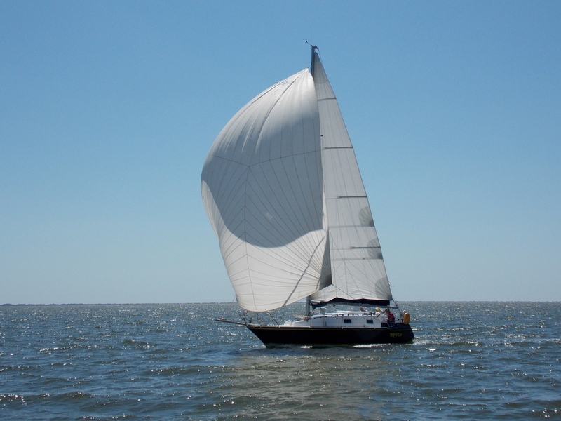 Спинакер - это тот пузатый парус,........ Самый сложный в управлении, обычно для управления требуется 2 человека.