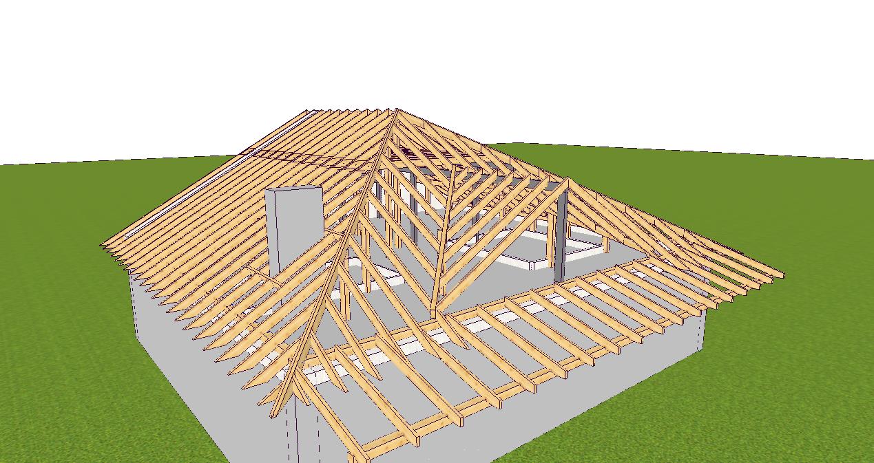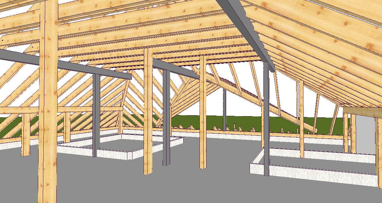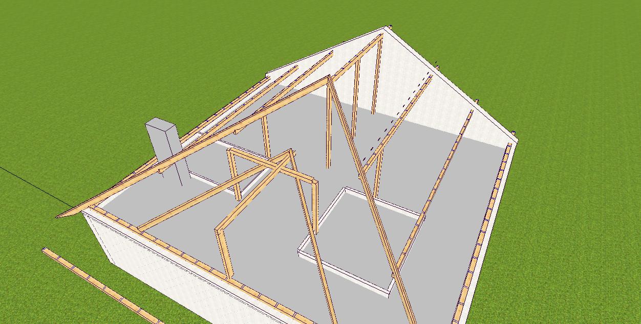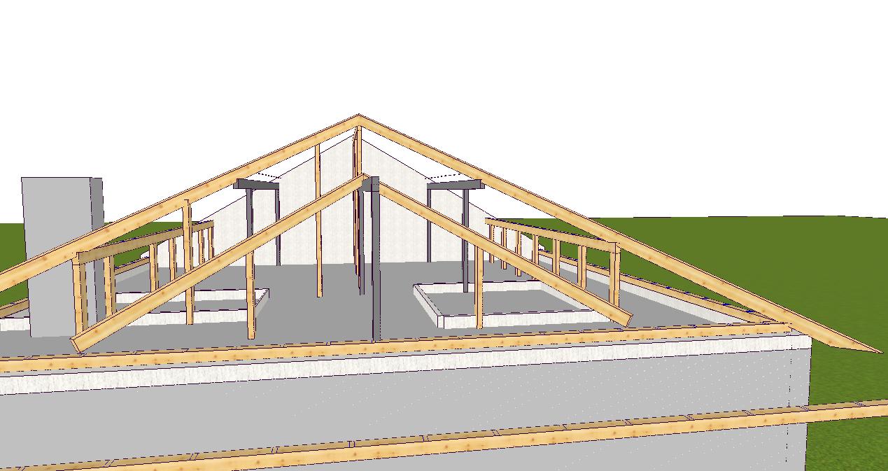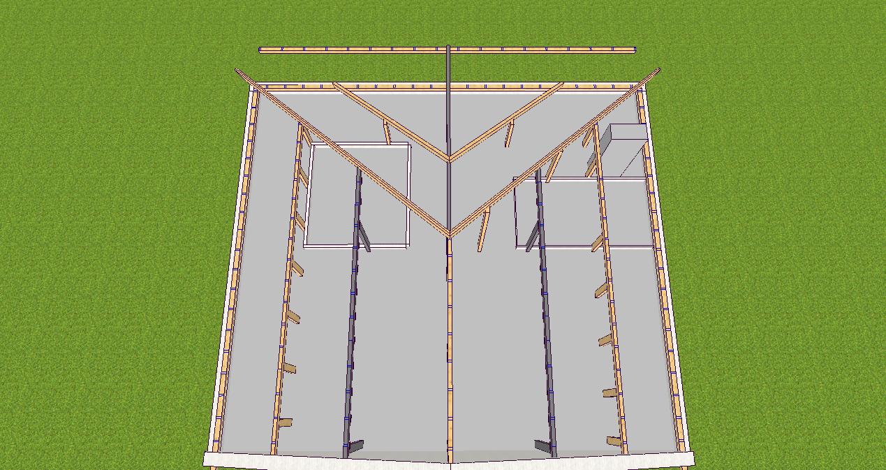 Хребты будут опираться на коньковый прогон . Стойки под него еще не прорисованы.