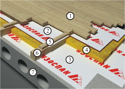 4. Лаги (балки), заполненные минеральной ватой на всю высоту