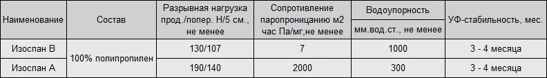 Технические характеристики продуктов Изоспан: