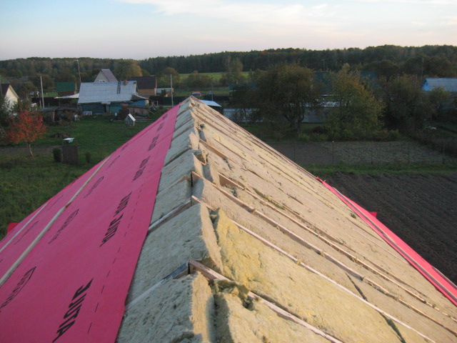 Если я правильно понял, на 4-м фото плёнку уложили вдоль фронтонной стены с компенсационной складкой. Это очень хорошо. Если трещина в бревне проходит из теплой части мансарды в утеплитель, обязательно заполните трещину герметиком (фото 4). Фото 5: рекомендую щель в месте стыка крайних стропил заклеить лентой или уплотнить герметиком. Утеплитель положен на "4--", но надеюсь, на Вашей крыше проблем не будет.