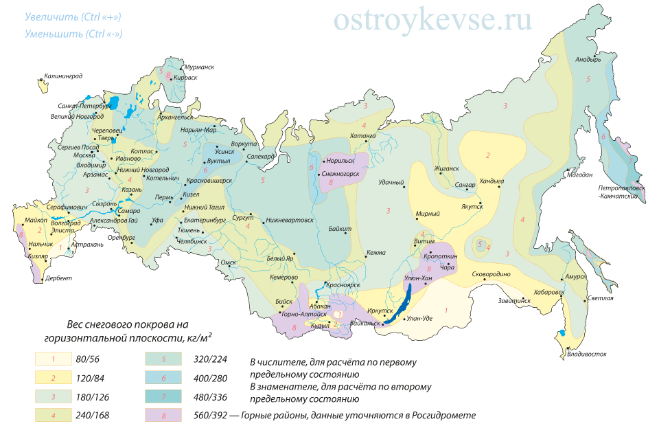 Тут карта по районам снежного покрова на плоскости. Снегозадержатели будут работать в том случае, если учесть при монтаже все факторы, а их много. Начиная от того, во что крепить и заканчивая сколько рядов на скате применить в данном случае.