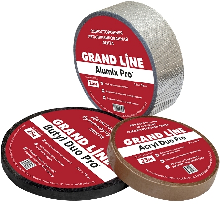 Соединительные ленты Grand Line применяются для склеивания пароизоляционных, гидроизоляционных пленок и диффузионных мембран.
