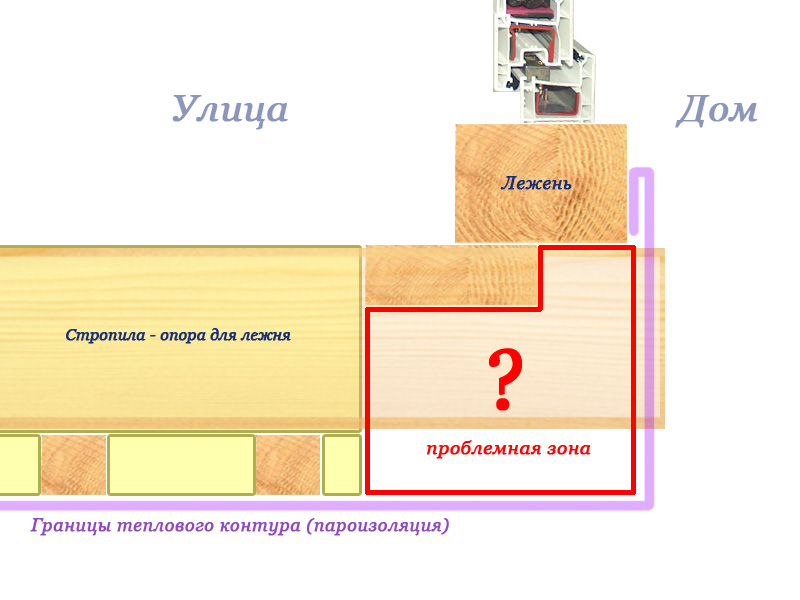 Еще один сложный для меня момент.. Попытался описать ситуацию на фото ниже. Вопрос - оправданы ли мои опасения по поводу того, что вата, заложенная в "проблемной зоне" (красный цвет) не сможет отдавать влагу, потому как изолирована сверху вертикальной паронепропускаемой плоскостью (лежень)? Если да - как быть? Использовать в этом месте альтернативные материалы (паронепропускаемые)? Или может есть какой-то прием как раз для подобных ситуаций? Спасибо..