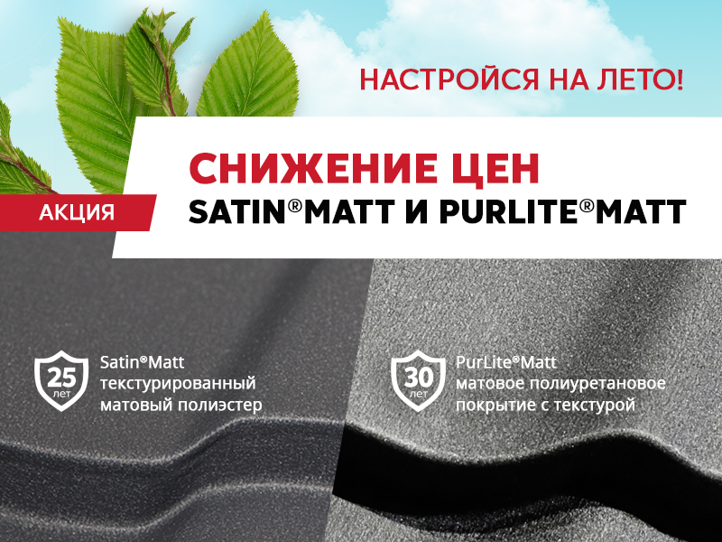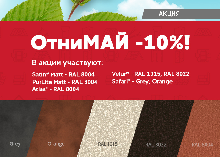 В рамках акции снижены цены на профилированную продукцию в определенных цветах на 10% в покрытиях: