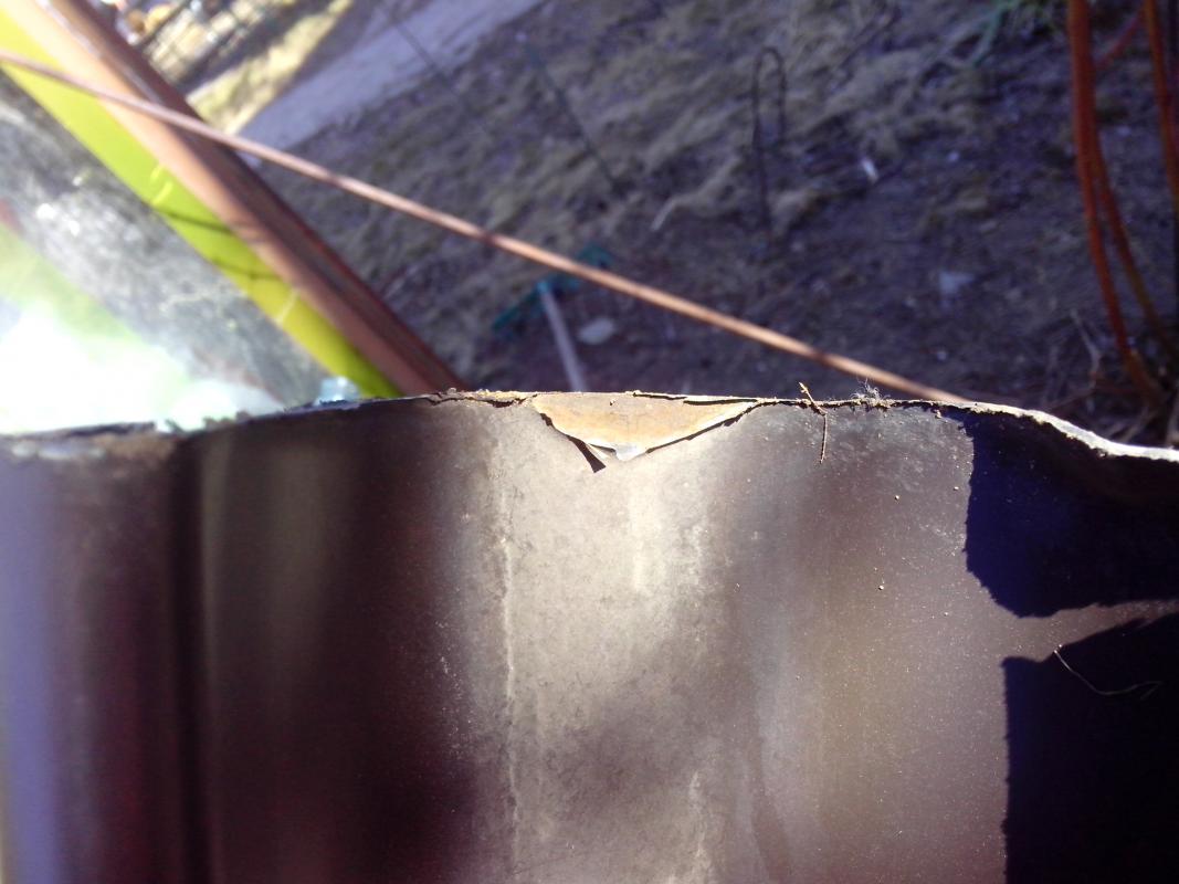Кстати о применении "болгарки" , на данной кровле все листы резались именно ею, коррозия только непосредственно на линие реза , а так же желоб водосточной системы резался ею же , а место более нагруженное водой чем это на кровле трудно представить