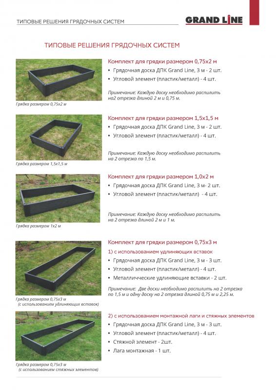 В нашем ассортименте новинка - грядочная система Grand Line из древесно-полимерного композита. Грядки и клумбы из ДПК - это эстетичное и долговечное решение для сада и огорода. Типовые решения грядочных систем Преимущества грядочной система из ДПК: